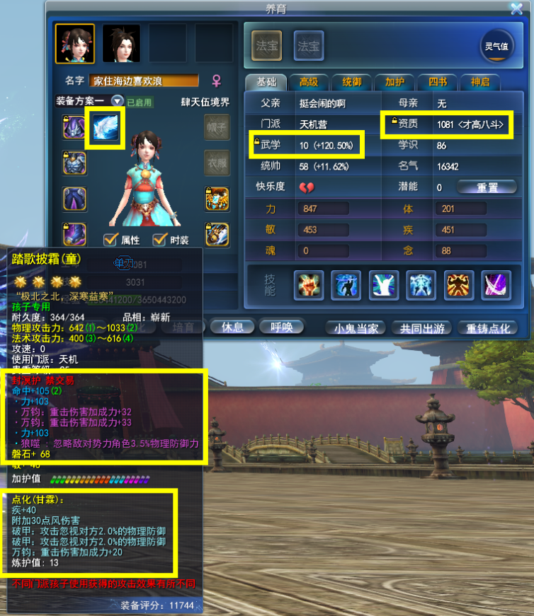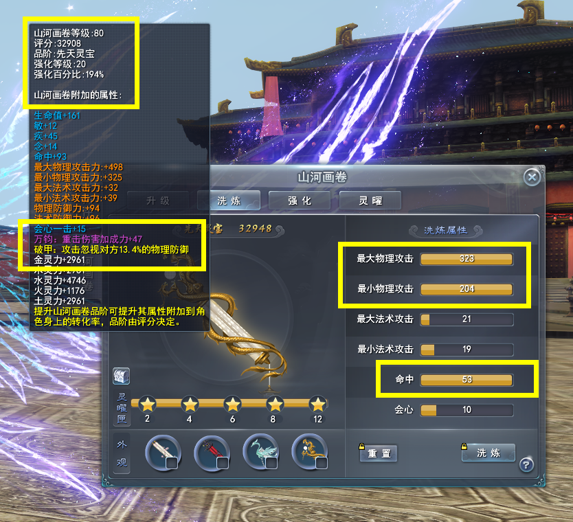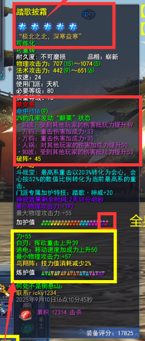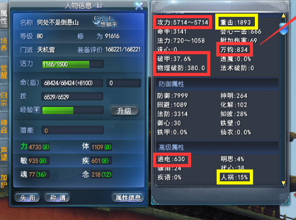 武学10 + 4星极品太初 + 极品点化数值满(双破甲)4个5条双万钧点化 + 4本8级双万钧天书(参悟5.2%破甲)