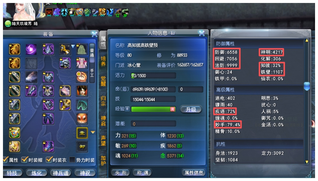 武学10 + 极品双明慧点化(全部5条铁壁)+ 双妙手天魄 + 双铁壁天书 孩子九鼎系统:装评点化