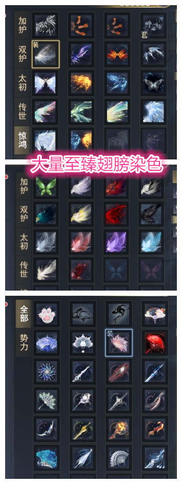 一代金尺寸太初 + 二代双红双6000尺寸太初 + 土豪马 + 17个至臻翅膀(大量染色) + 36个武魂 风华值35万