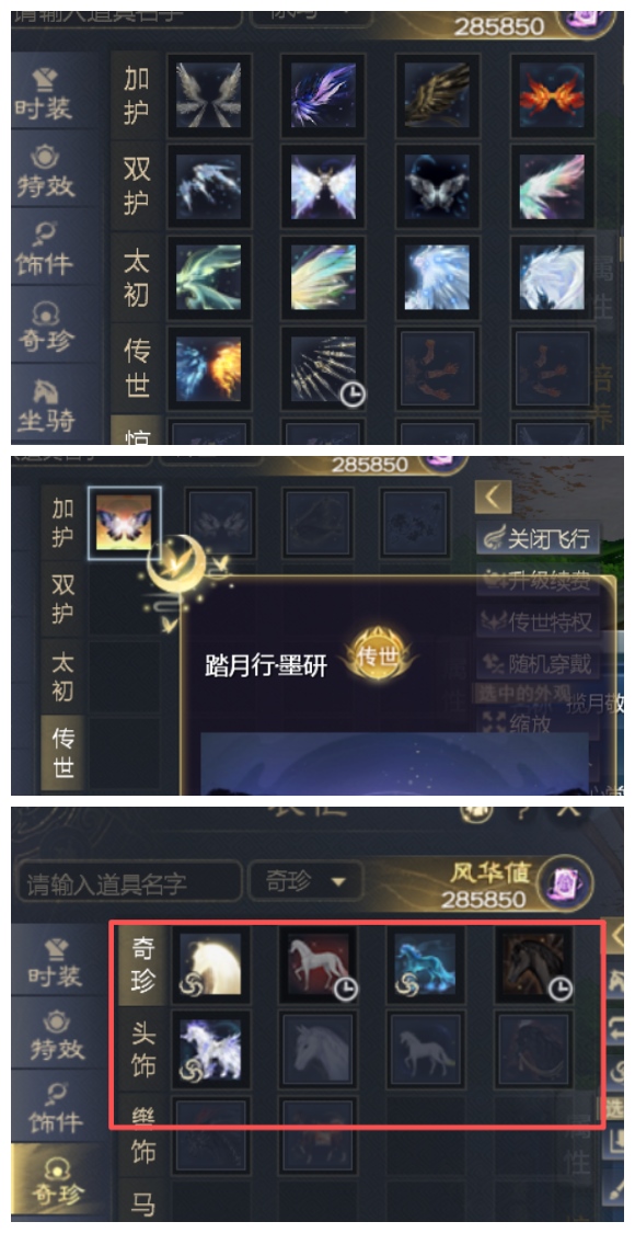 5800尺寸太初翅膀 + 一代双金尺寸太初 + 传世 +3个土豪马 + 冰火翅膀 +16个至臻翅膀 + 月下来客 +大量永久时装+XZX全齐 + 风华值30万+