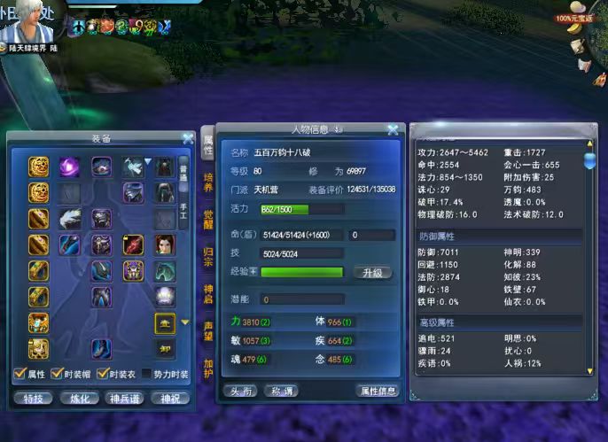 角色特点:2个翅膀 极透六翼4600金尺寸2代太初 物理防护完封 483万钧 17.4%破甲 12%人祸 23%知彼 炼护十六孔 8大禹 20钻18户武器 双太初武器 太初门派特技 5-6级4条知彼天魄 孩子大翅膀 双破甲/双明慧点化 6级双万钧天书 鱼鬼老虎3个合体 灵光一闪18 画卷单满 强化12级 5-6级单破甲灵曜 英魂3个100级 77手工套