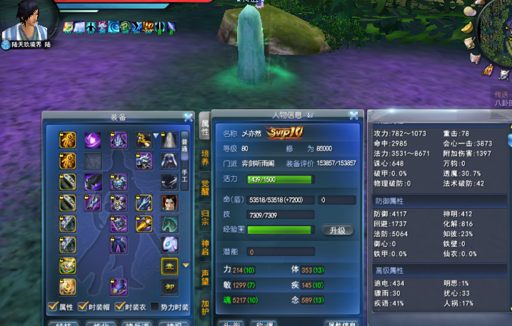 角色特点:单满20钻 青花玄素 6个翅膀 双金双紫二代太初 伤害防护完封 648诛心 30.7%透魔 15%人祸 23%知彼 6%透魔副手激活 全神祝游戏大法8670 知彼+大法天魄 极品晶符 6条势力技能修炼 天魄透魔组合 孩子武学10 双透魔/双明慧点化 双会心天书 翅膀通溟2个双透魔 鱼狐狸双合体 灵光一闪20 透魔组合3.3% 画卷双满 强化15级 7级双透魔灵曜 透魔组合3.0% 英魂3个100级 特技圣灵+20