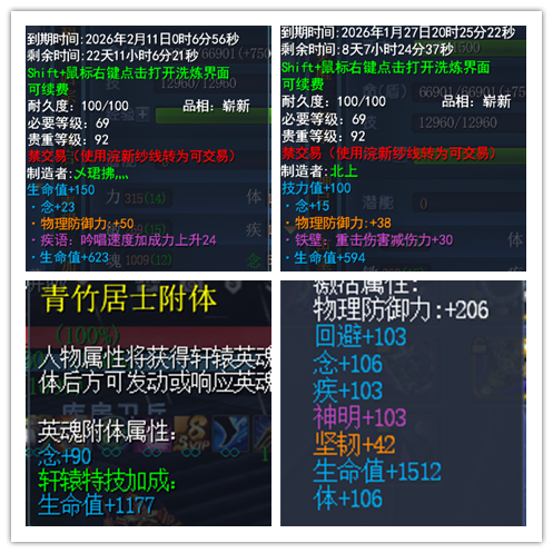 极品手工时装 极品英魂(念90+生命1177) 3个极品高铁壁双明慧点化 武学10