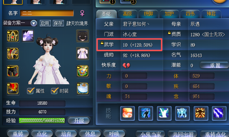 武学10 + 极品双明慧点化(3条铁壁)+ 妙手天魄 + 双铁壁天书 孩子九鼎系统:装评点化