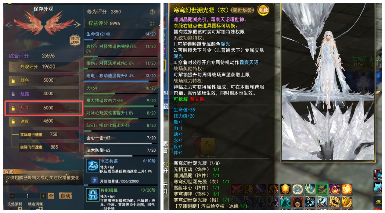 6000尺寸太初翅膀 +新老青花熊猫二套 + 9个至臻翅膀+ 19把武魂 + 大量XZX加永久时装