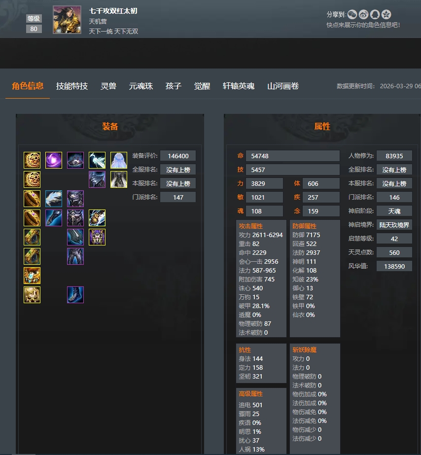 神启双18会心天机,七千大攻28破甲,换个双破甲点化直接30,带高风华,5600权益双红太初,已上架
