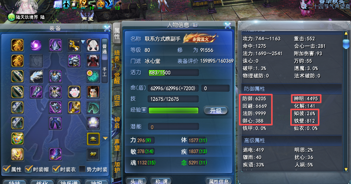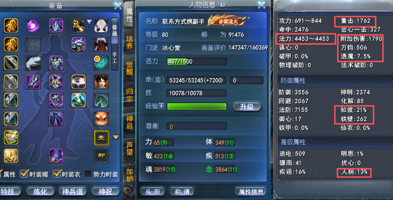 全战场3妙手冰心 二套完整流派装备(毒套马孩子炼化) 全身19钻 全7级知彼妙手天魄 部分妙手威力 二套手工时装 极品马灵化物防400+ 画卷强化171% 伤害防护(8大禹二套激活) 战场套激活极品(全满御心+毒套人祸) 武库:80副本手工套 + 双18(毒套副手+玉佩) 势力修炼8孔(毒+念二套) 带新锐名人堂奖励前4