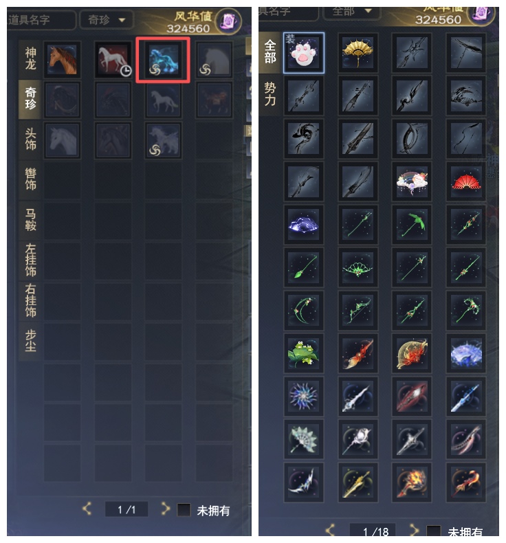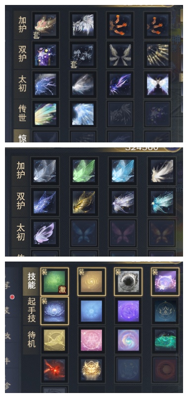 3红高特技太初(大跳4级 人祸)+ 一代3000尺寸3金太初 + 土豪马 + 14个至臻翅膀+ 大量xzx永久时装+武魂 32.4万风华值