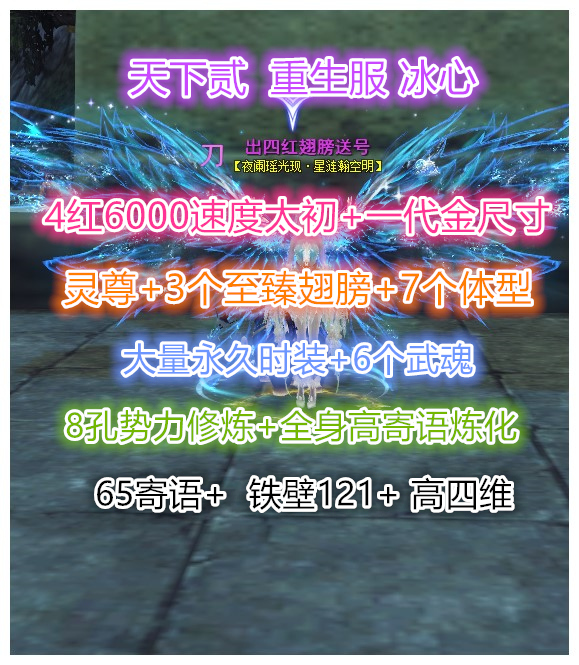 重生服冰心【捡漏价】4红6000速度太初 一代金尺寸太初 3至臻翅膀 全身高寄语炼化 65%寄语 高维度 铁壁121+ 势力修炼8孔 叁境界小八 觉醒62级 仓库武库【各种外观彩蛋 雷钻+艳流彩】灵尊