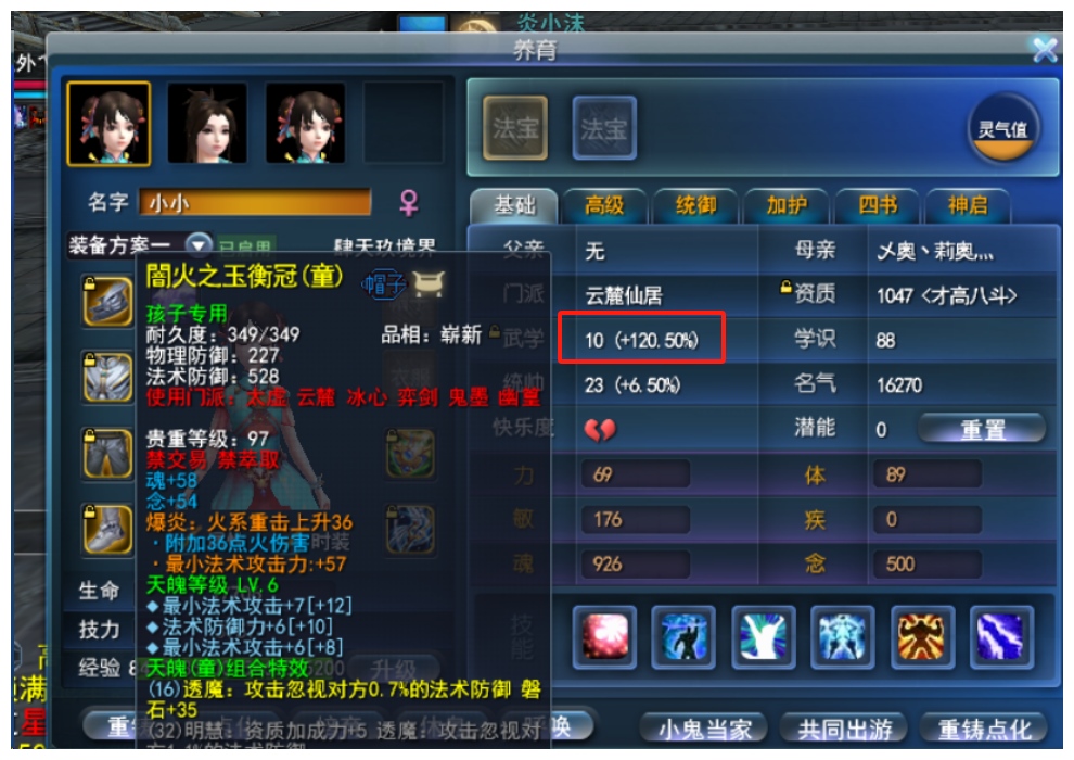 4星双万钧太初 + 武学10 + 点化双透魔(2个5条万钧点化) + 7级4本极品双万钧天书(参悟4.0%透魔)