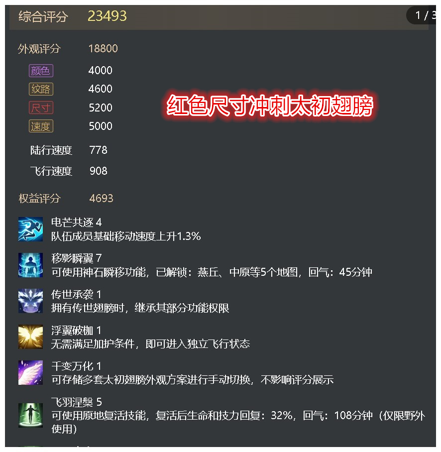 红色尺寸冲刺太初翅膀 + 5个至臻翅膀+ 大量永久时装