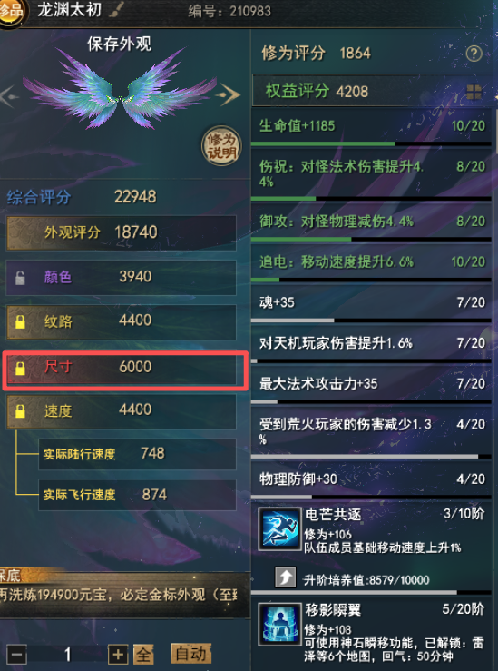 6000尺寸冲刺特权太初翅膀 + 双至臻翅膀 + 新神临时装