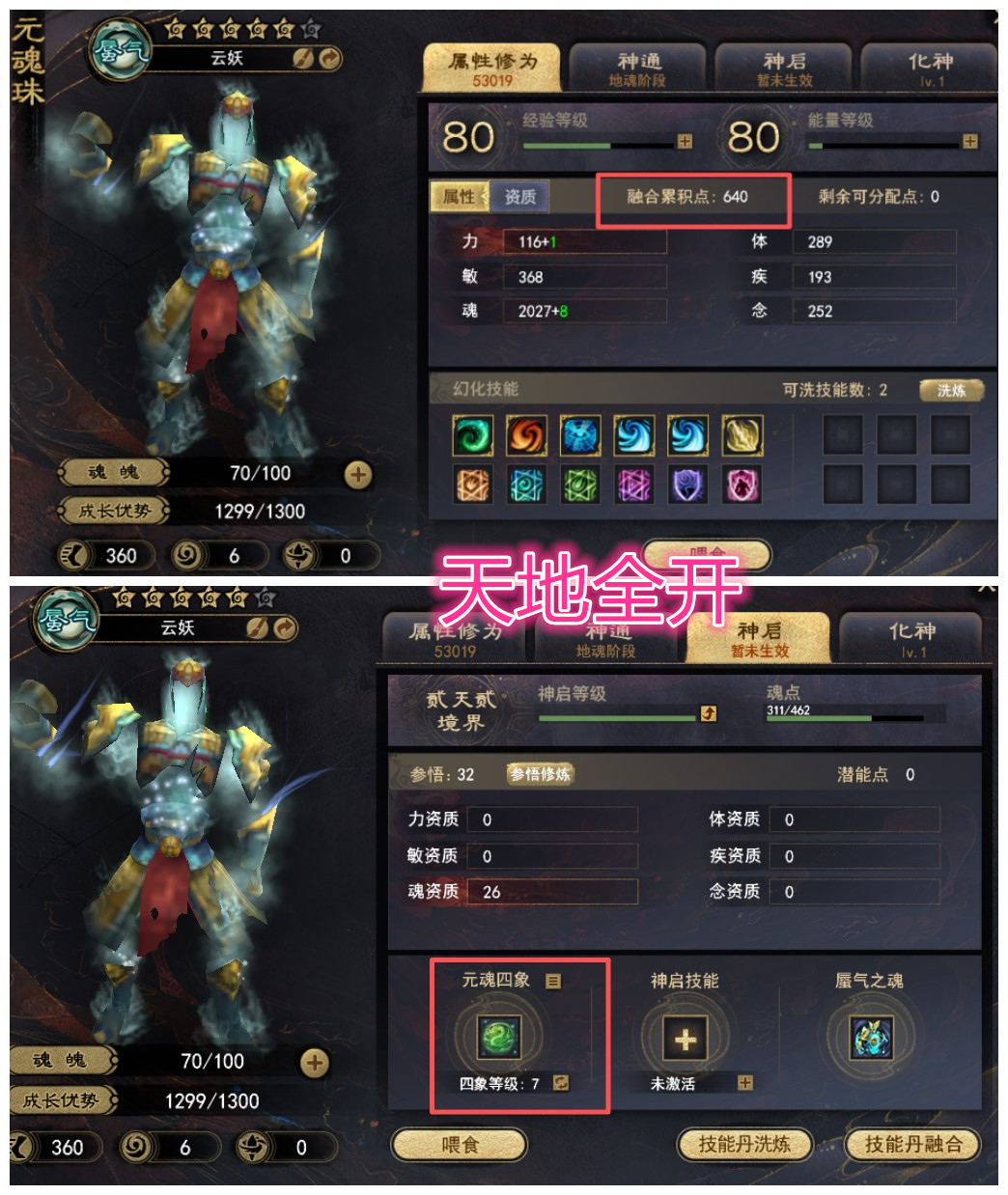 640五星神启完美技能炎妖合体(四象7)+ 550四星鬼合体