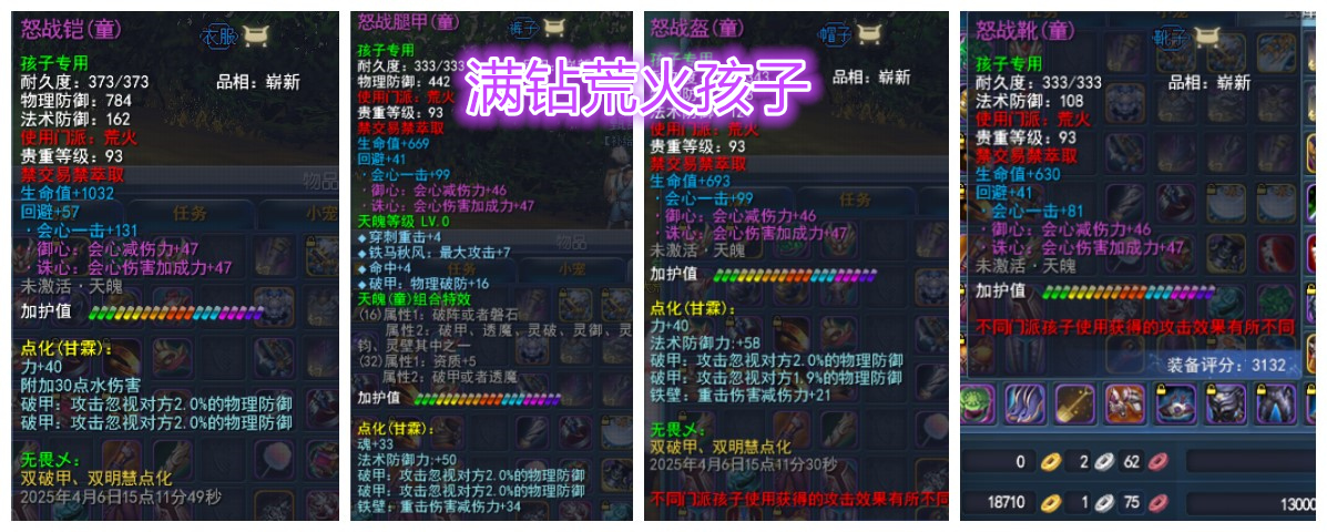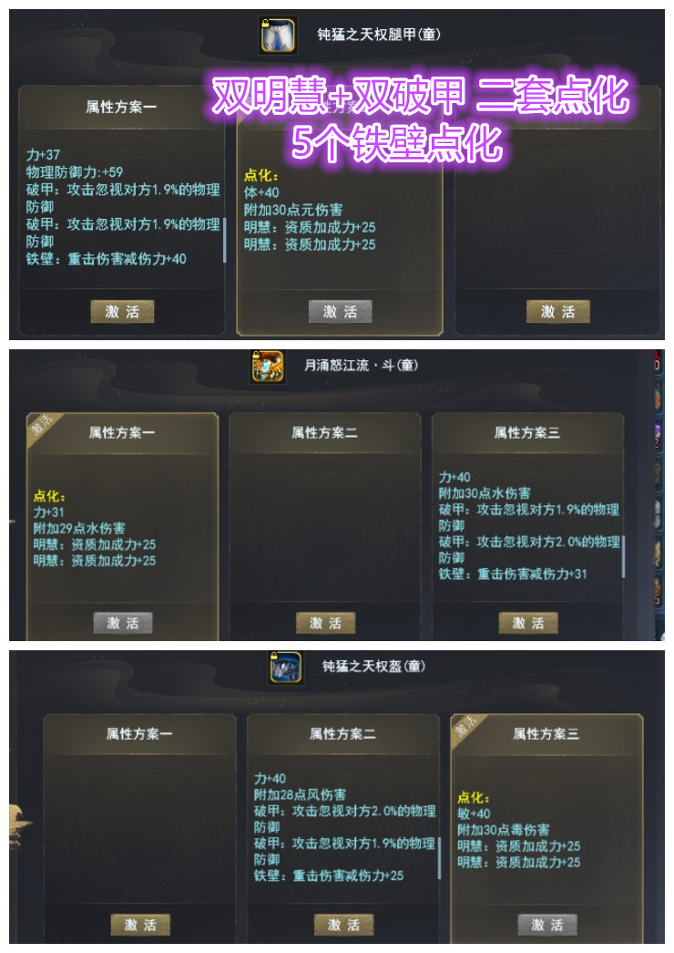武学10 + 极品2套点化数值满(双破甲+双明慧 5个铁壁点化) + 4本8级双铁壁天书(参悟5.5%破甲)+ 孩子翅膀诛心铁壁+诛心铁壁 高花瓣