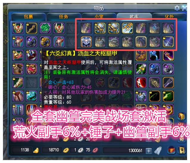 神启双20顶级会心天机 4星人祸太初 10个21钻 全身高追电附元技能威力炼化(幽篁天机副手6% 无缝转 幽篁全战场套激活拓下来了) 武学10 全身8级道具(天书/灵曜/马丹/天魄)大攻8175+ 会心3840+ 诛心662+ 破甲30.6% 物理破甲759+ 人祸22%+ 极品英魂(力104+ 大攻105+) 手工时装(双诛心32++双大生命) 画卷强化195%双满(洗炼破甲3.1%+2%) 极品马灵化 4个双会心(破甲2%)诛心165+大年卡2028年5月 仓库各种年卡道具 升级材料 400个年卡勋章 14~15钻80手工套 全身多套炼化(力敏)