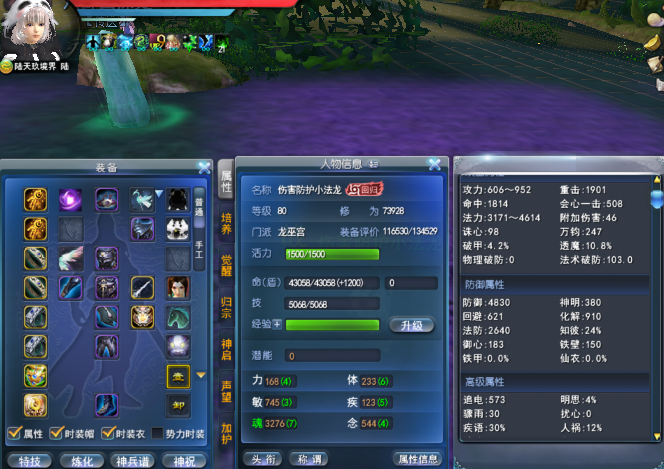 角色特点:青花玄素 1个翅膀 3个武魂 伤害防护完封 247万钧 150御心 183铁壁 10.8%透魔 103法术破防 12%人祸 24%知彼 8大禹 全身4条知彼/透魔天魄 一个知彼+透魔天魄 成品人物双究太初武器 太初门派特技 彩蛋魂 孩子单透魔点化 铁壁万钧天书 4条透魔天魄 画卷接近双满 强化12级 透魔灵曜 鱼炎妖双合体 人物满级 英魂80级