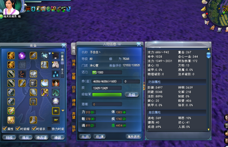 3个翅膀+1染色(3代粉) 青花玄素 13W风华值 2境界物理防护完封 406铁壁 拆钻游戏36%寄语 8大禹 5-6级4条天魄 双太初武器 孩子武学9 明慧点化 单铁壁天书 翅膀通溟2个铁壁 花草合体 灵光一闪15 铁壁马丹 画卷单满 铁壁灵曜 英魂80级 武器未拆钻(价值1000R)