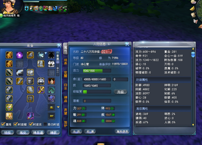 青花玄素 9个翅膀+3染色 19个武魂 花语妙手特效 27.5W风华值 5500红颜色+3紫二代太初翅膀 物理防护+完封 405铁壁 游戏拆钻67%寄语 8大禹 5-6级4条天魄 孩子武学7 1个双明慧点化 双铁壁天书 单铁壁马丹 6星花草合体 画卷回避神明接近双满 4条单铁壁灵曜(少1个灵曜)