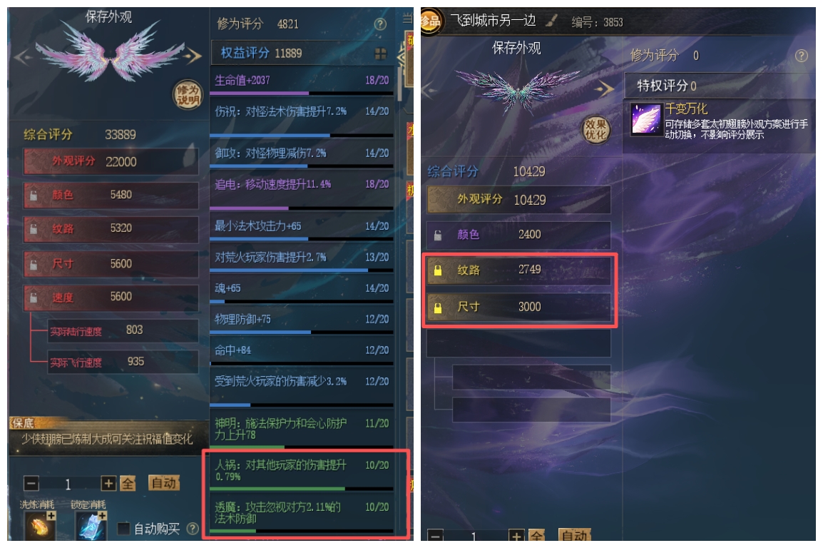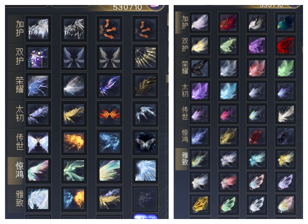 名人堂翅膀 + 四红极品太初翅膀(人祸+透魔特技) + 一代3000尺寸外观+ 双传世双土豪马 + 27个至臻翅膀+45个武魂 53万风华值