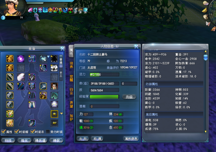 292钻粉翅膀 青花玄素 十二个翅膀 1代土豪马 4800金纹路二代太初 伤害防护我完封 402诛心 17.1%透魔 5%人祸 副手6%满透魔 势力技能6条 孩子双诛心/双透魔点化 双会心天书 翅膀通溟透魔/铁壁 5星杀手合体 灵光一闪16 6级单透魔灵曜 英魂3个100级 77副本套