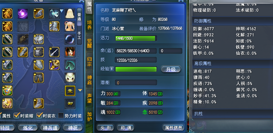 满速度太初,毒套秒伤2w,全6级/7级的4条妙手/双回避天魄,完封伤害防护,扶桑狐狸可交易,包里2个艳流彩,提点化炼化道具,半个笔7碎片,2w5炼化声望6000天域