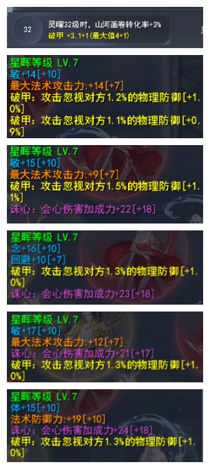 武学9 + 4星太初 + 6~7级天书双会心天书 (参悟3.5%破甲)+ 二套点化双诛心(双诛心 双破甲)