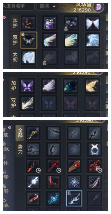 6000尺寸太初翅膀 +新老青花熊猫二套 + 9个至臻翅膀+ 19把武魂 + 大量XZX加永久时装