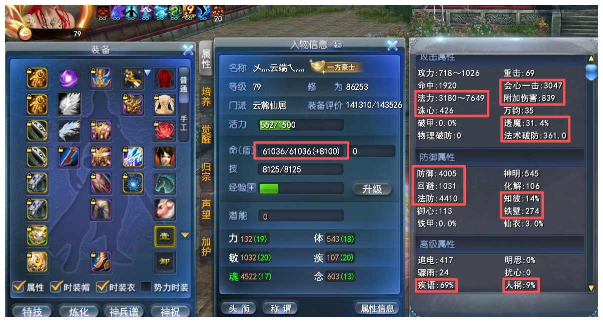 79双第一名人堂云麓 特技:护心 双武学10 全身14颗帝钻 全身高金色满威力炼化 手工时装满大生命+双32万钧 名人堂副手6%透魔(人祸寄语会出) 极品英魂(魂109+ 大法109) 全4条带究极品马灵化 属性:大法7649+ 会心3047+ 诛心426+ 透魔31.4% 法破361+ 寄语69% 人祸9% 高双防 高爆发 5星拓星石(双人祸双万钧磨具)