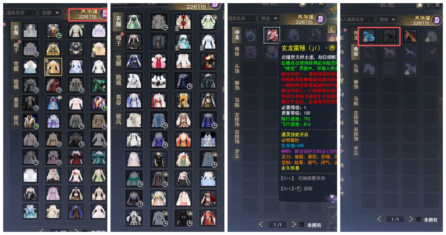 名人堂翅膀 + 双红6000速度 + 一代3个3000外观+ 双土豪马+神龙 + 8个至臻翅膀+ 22.6万风华值